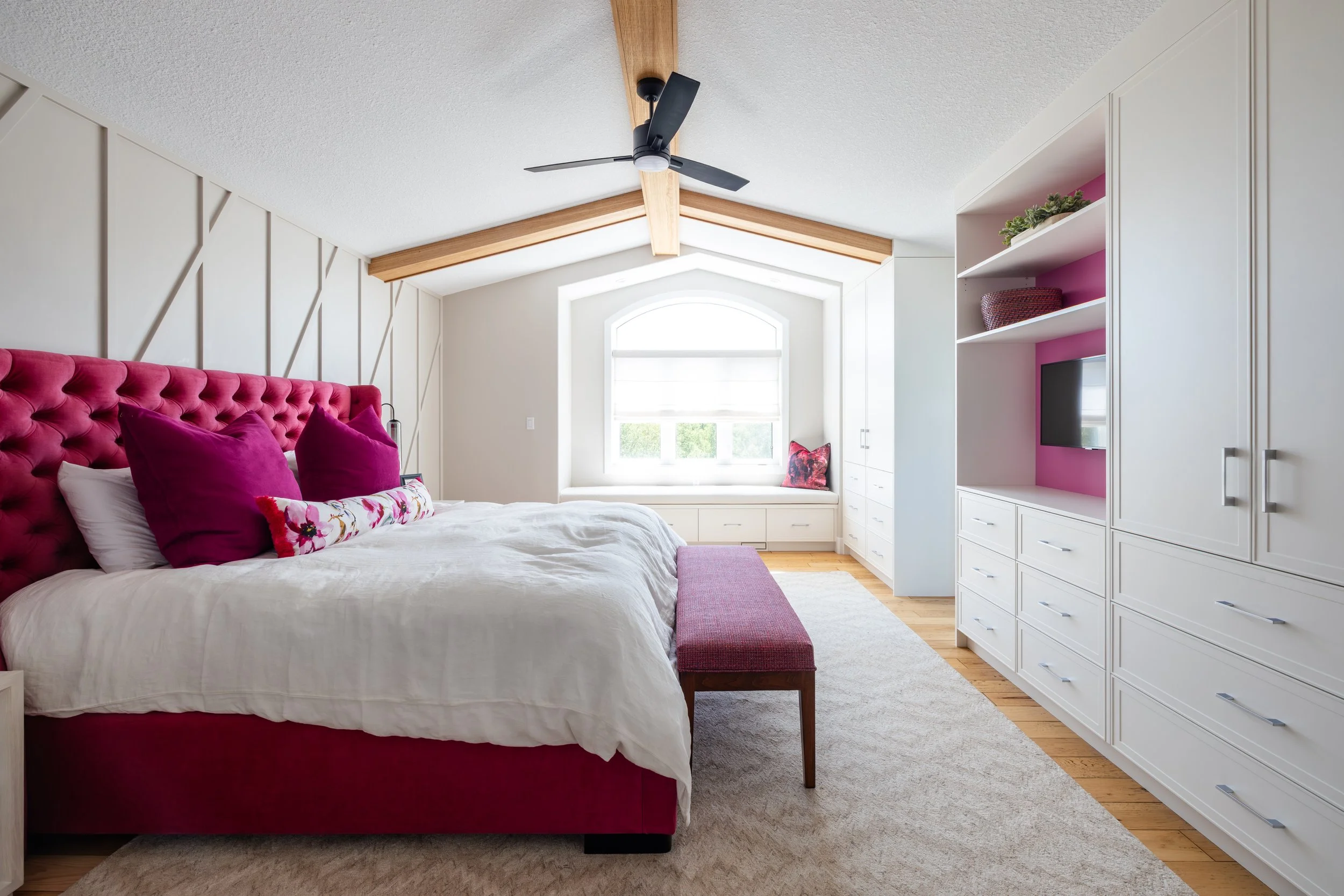 Following the success of our first renovation together, the clients invited us back to transform more of their home. In collaboration with the AMR Design team, we turned the basement rumpus room into a warm, inviting space for family time and entertaining. Upstairs, two bedrooms were refreshed with a timeless look, while the primary suite became a calm, spa-inspired retreat with bold, playful accents. On the main floor, we reworked the mudroom, laundry, and office to improve function and flow. The result is a cohesive, personalized home that supports the family’s lifestyle.